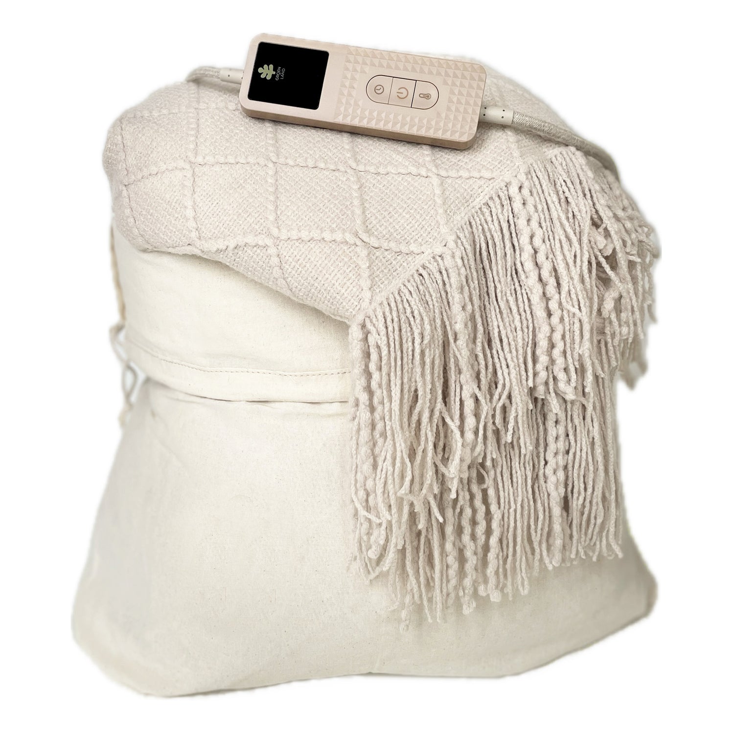 Your heated sofa blanket comes with a matte taupe controller with a natural linen cord.